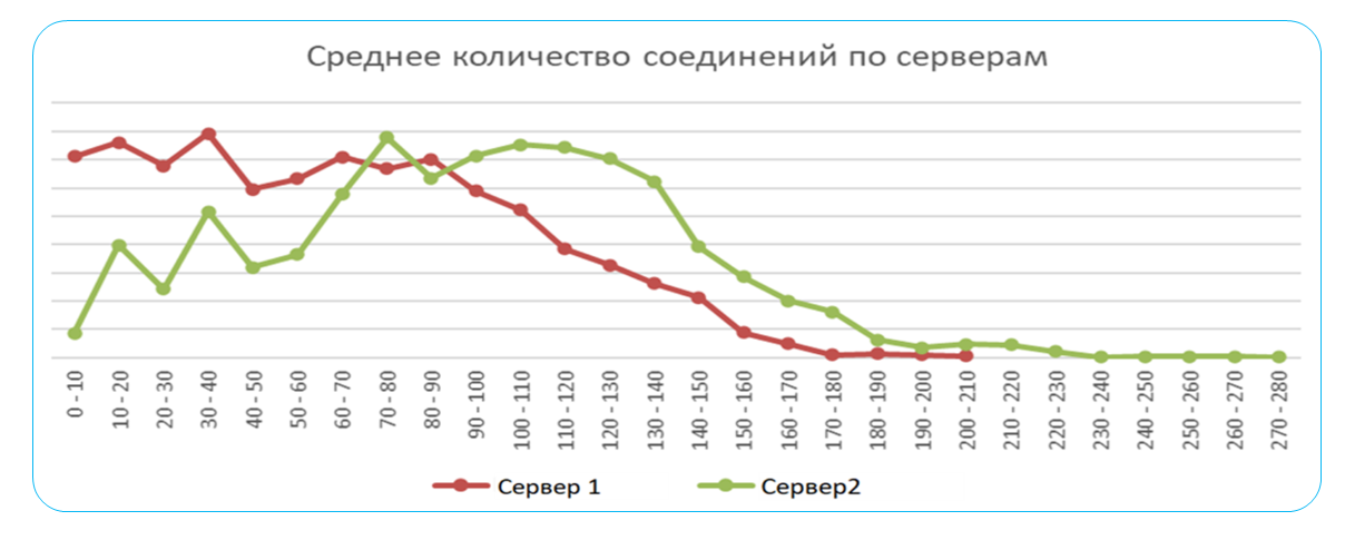 Иван Груздов. При мониторинге кластера из двух аппаратно-идентичных серверов 1С мы обнаружили существенный дисбаланс в распределении нагрузки. Статистика показывала, что сервер 2 принимал в среднем в два раза больше соединений (70-150), чем сервер 1 (0-90), несмотря на одинаковую конфигурацию оборудования.