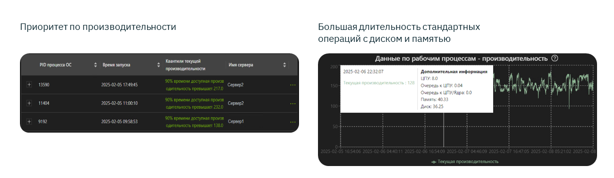 Система может выявить проблемные места, например, дисковые операции, выполняемые медленнее ожидаемого. Однако она не способна дать конкретные рекомендации по устранению причин. Определение причины — это отдельная масштабная задача, требующая глубокого анализа. Система выступает как арбитр в вопросах производительности: она может помочь локализовать проблему и подтвердить, что ее источник — в инфраструктуре клиента. Но диагностировать конкретную причину необходимо вручную.