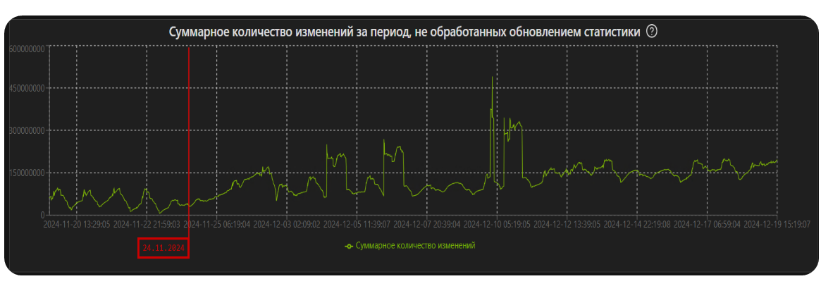 Иван Груздов. Мы осуществляем постоянный мониторинг количества изменений в данных, необработанных статистикой, с визуализацией этих показателей на графике.