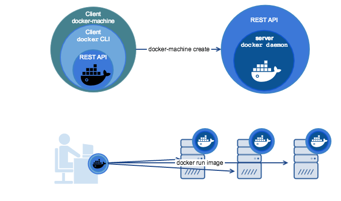 Вне зависимости от того, используете ли вы Mac, Windows или Linux, вы можете установить Docker Machine и использовать команду docker-machine для подготовки и управления большим количеством Docker хостов. Она автоматически устанавливает на хост Docker, т.е. устанавливает Docker Engine, затем помогает настроить и клиент docker.