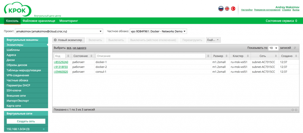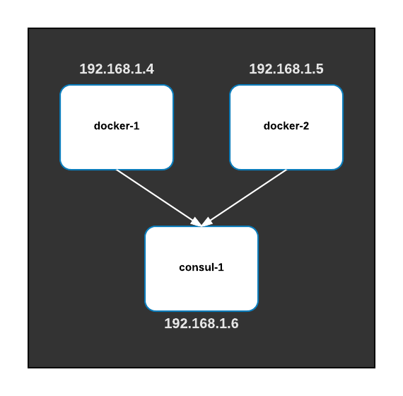 Итак, давайте создадим оверлейную сеть между хостами Docker. В нашем примере мы настроим ее между тремя хостами: двумя Docker хостами и одним хостом с Consul-ом.