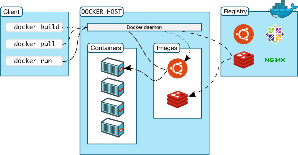 Для понимания внутренностей Docker вам необходимо знать про образы (images), реестры (registries) и контейнеры (containers).