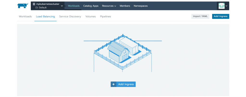 Давайте опубликуем наш Nginx наружу как нормальное Web-приложение. Для этого перейдем во вкладку Load Balancing и добавим Ingress LoadBalancer.