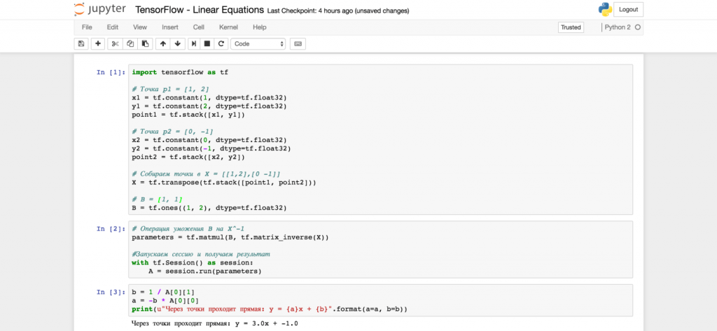 В принципе, эти уравнения можно решить при помощи целого ряда всевозможных методов, но в этой статье мы посмотрим на то, как для этого использовать tf.matrix_solve в TensorFlow.