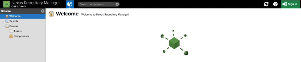Для того, чтобы настроить репозиторий, необходимо зайти под учетной записью администратора (меню «Sign In» в верхнем правом углу экрана):