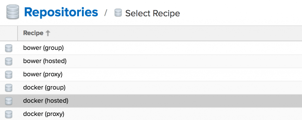 В списке доступных репозиториев выберите «docker (hosted)»: