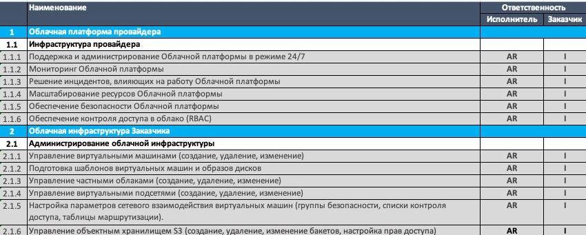 Неприятности чаще всего возникают из-за банальной дискоммуникации между командами, в которые входят сотрудники провайдера, поставщика решения, вендора, служб разработки и эксплуатации. Еще хуже, когда в подобных случаях кто-то пытается переложить вину за ошибку на коллегу. Чтобы этого не происходило, провайдеры уже несколько лет используют так называемые RACI-матрицы – формализованную методику распределения зон ответственности. Методика распространяется не только на исполнителя, но и на заказчика – в первую очередь в проектах, связанных с поддержкой инфраструктуры. Неважно, на базе чего она предоставляется – выделенного оборудования в ЦОДе, публичного или частного облака.