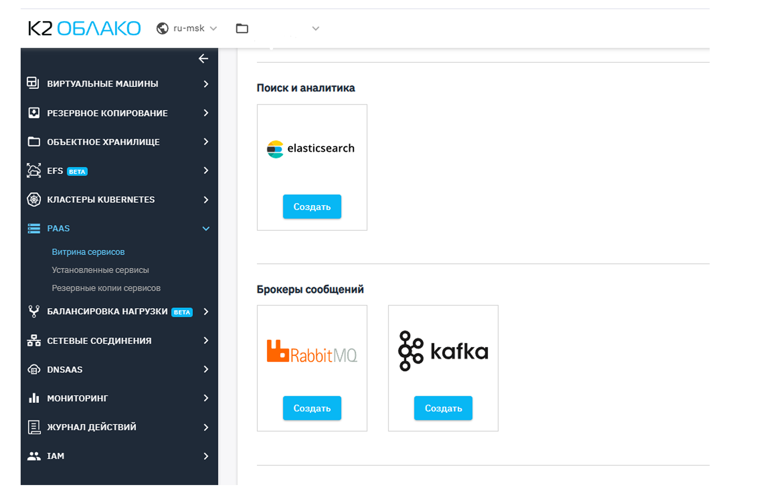 Выберите тип PaaS, задайте необходимые настройки и нажмите Создать.