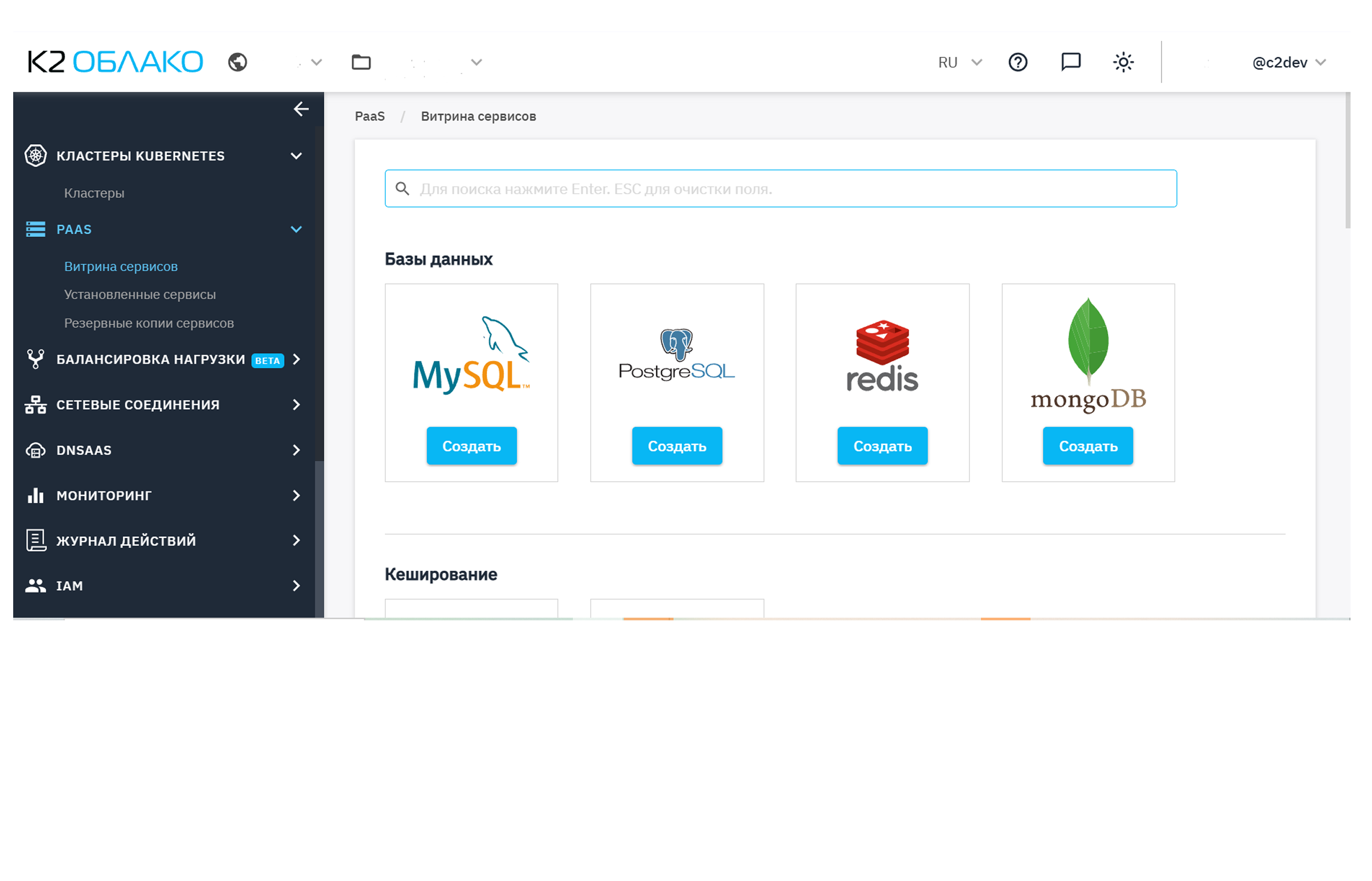 PostgreSQL и MySQL используют стандартные учётные записи. MongoDB поддерживает SCRAM. Redis — авторизация по паролю. Управление пользователями возможно через интерфейс консоли управления К2 Облака.